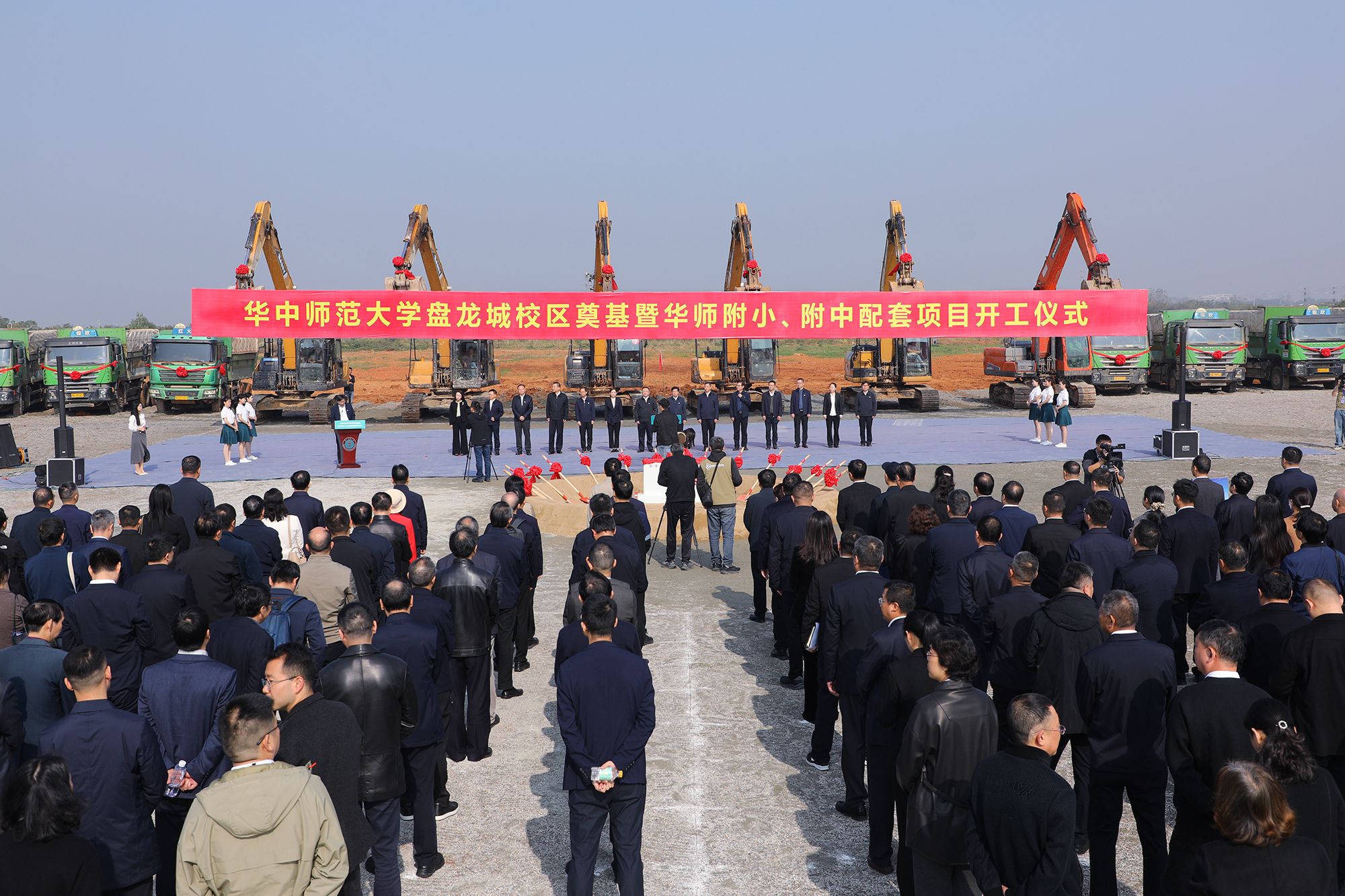 10月28日,盘龙城校区奠基暨华师附小、附中配套项目开工仪式在黄陂区盘龙城经济开发区举行。黄陂区委书记何建文,区委副书记、区长张劲,区人大常委会主任陈军,区政协主席熊定萍,校领导夏立新、彭双阶、查道林、陈迪明、周鹏程、刘宏达、刘三女牙、吴丹,原副校长、盘龙城校区建设指挥部第一任指挥长任友洲,武汉市城市建设投资开发集团董事长余新民、总经理盛华,共同为盘龙城校区奠基。